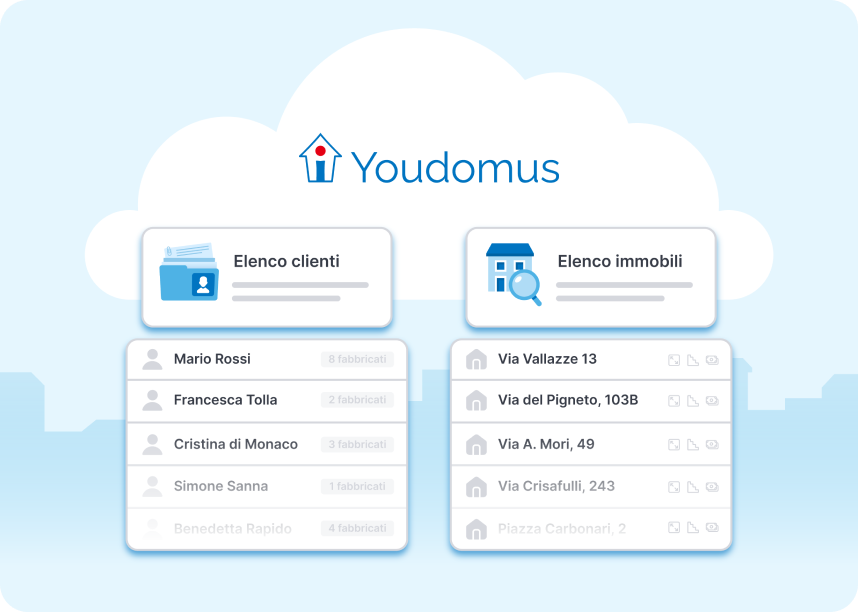 Proteggi le tue provvigioni senza pensieri. Youdomus monitora per te persone e immobili, inviandoti una notifica in caso di variazioni catastali.